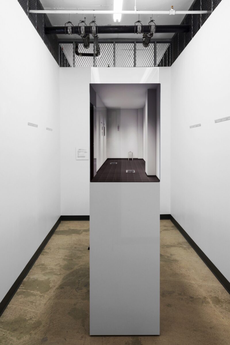 In 2008, Tomas began a process of anamnesis on the first years of his art career, influenced by “post-studio” practices. Artworks (or their residues), first conceived to resist the status of luxury goods, resurfaced much later in the secondary market. With the advent of Internet auction platforms, Tomas assembled a modest collection, composed mostly of photographs and works on paper. Surveying the sales organized by agencies such as Sotheby’s and Christie’s, he set up a system for recording fleeting traces reminiscent of the automated camera shutter trigger from his installations of the early 1980s. His parents had been antique dealers in the United Kingdom. As a child, he saw their travelling shop repeatedly fill up and empty. Like the items that appeared and disappeared in that store, the objects transiting through auctions gain an ephemeral visibility and then are eclipsed. Between 2010 and 2015, Tomas sent a list of correspondents anonymous emails with an “invitation” announcing the short interval of “public” availability of the works being auctioned. A series of videos and complex exhibitions were distilled from his examination of this market. In Lot 94, he highlighted information from the sale by Sotheby’s, on November 15, 2013, of documentary by-products of American artist Gordon Matta-Clark’s Fake Estates (1973). Matta-Clark had purchased, for extremely low prices, small lots situated in forgotten portions of the urban fabric of Manhattan. Tomas created several installations around this single transaction, giving it an afterlife within locations that were equally interstitial, such as a storage space in the Gaspé Building in Montreal. In a video from the series Lots (2013–18), he animated the online announcement of the sale of lot 94, published on the Sotheby’s website. Tomas privileged blank spaces, making the information unintelligible by breaking up the text and compressing Matta-Clark’s images in the montage. The soundtrack was composed of snippets of the auctioneer’s patter, keeping only the beginnings and ends of his sentences. Visitors were witness to a slow absorption of the content of the transaction in the form of truncated signifiers, floating topsy-turvy in a void.