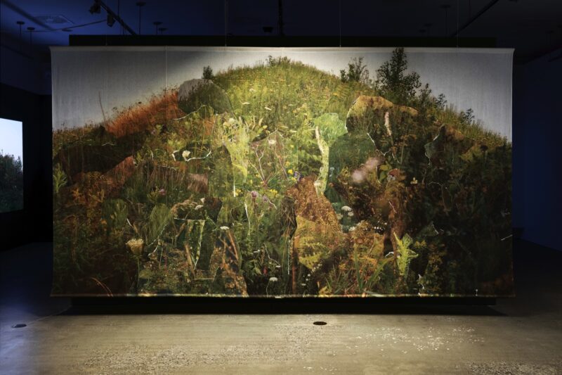 There are works that don’t make a splash but unexpectedly draw close, grazing us like a breath. Jacynthe Carrier’s works always do this, and more: they reach out and softly embrace us. Her exhibition presented at DRAC – Art actuel Drummondville, du seuil à la cime, invited visitors to slow down, listen, and perceive in different ways what often remains unsuspected and invisible: a place of transit – on the edge, ignored and forgotten – of unconscious shared gestures. She offered a nearby interstice that we could see differently, with an attention that surpassed comprehension.
