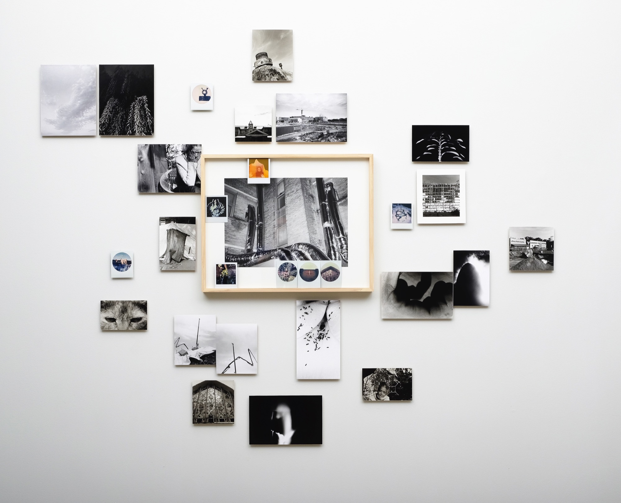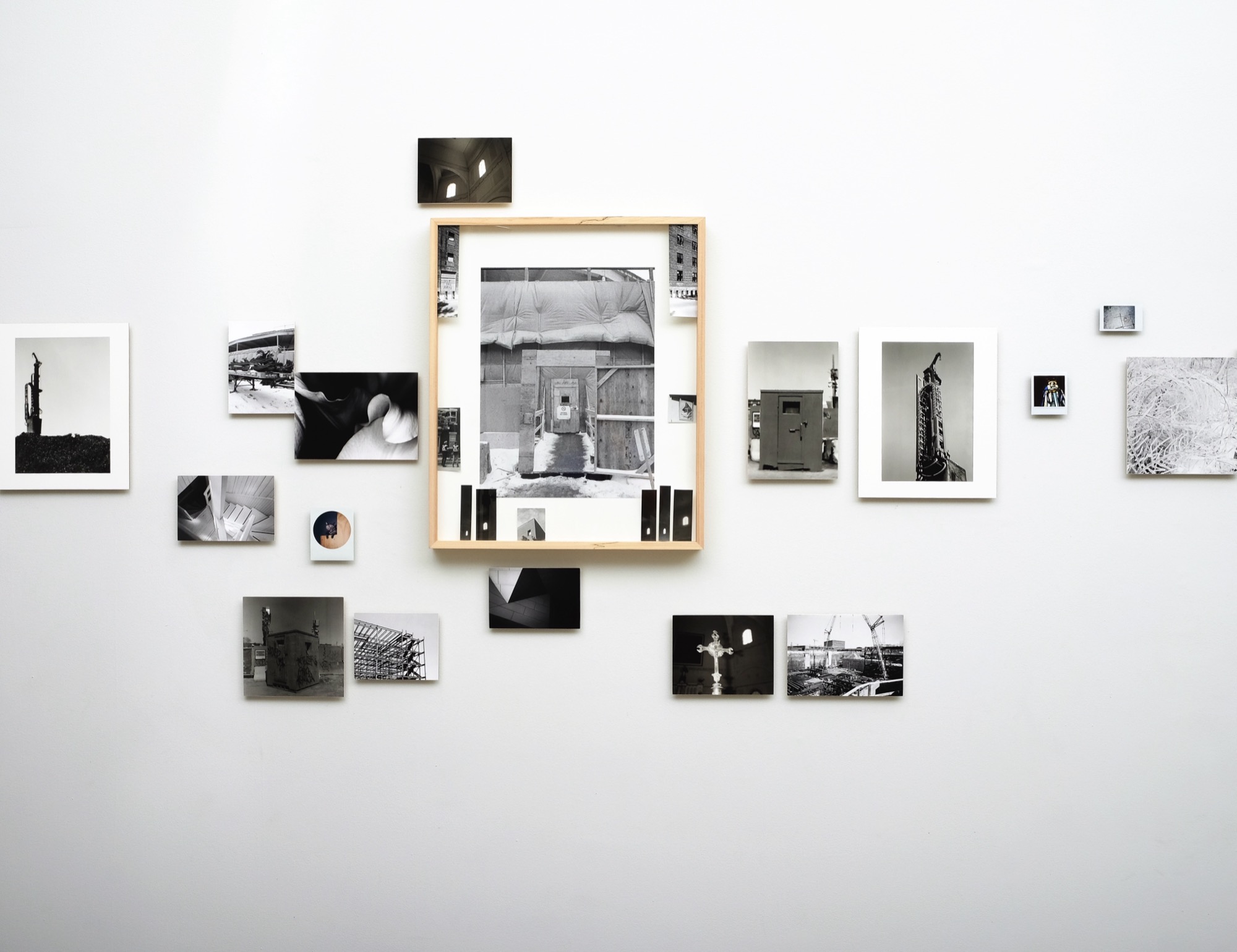 In his exhibition Somme toute, Yan Giguère presented twelve photographic assemblages from his eponymous project of fourteen “stations” – Giguère’s word for them – which totalled 242 analogue images. Their composition and form of installation testified to his renewed attention to the photographic object and its narrative potential. A sheet of paper at the entrance to the gallery offered much technical information, from types of cameras (including instant cameras)