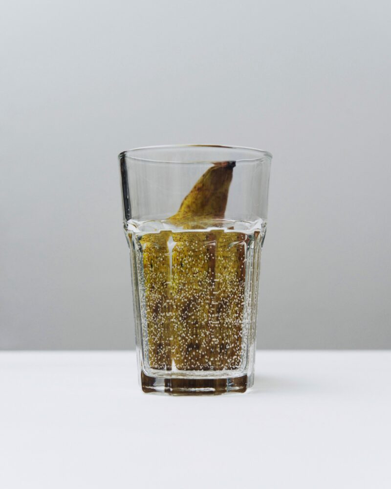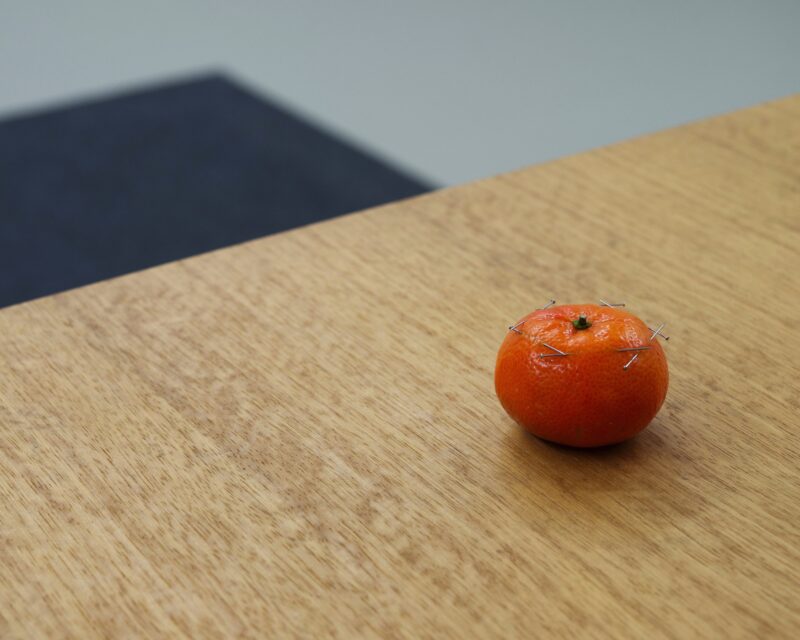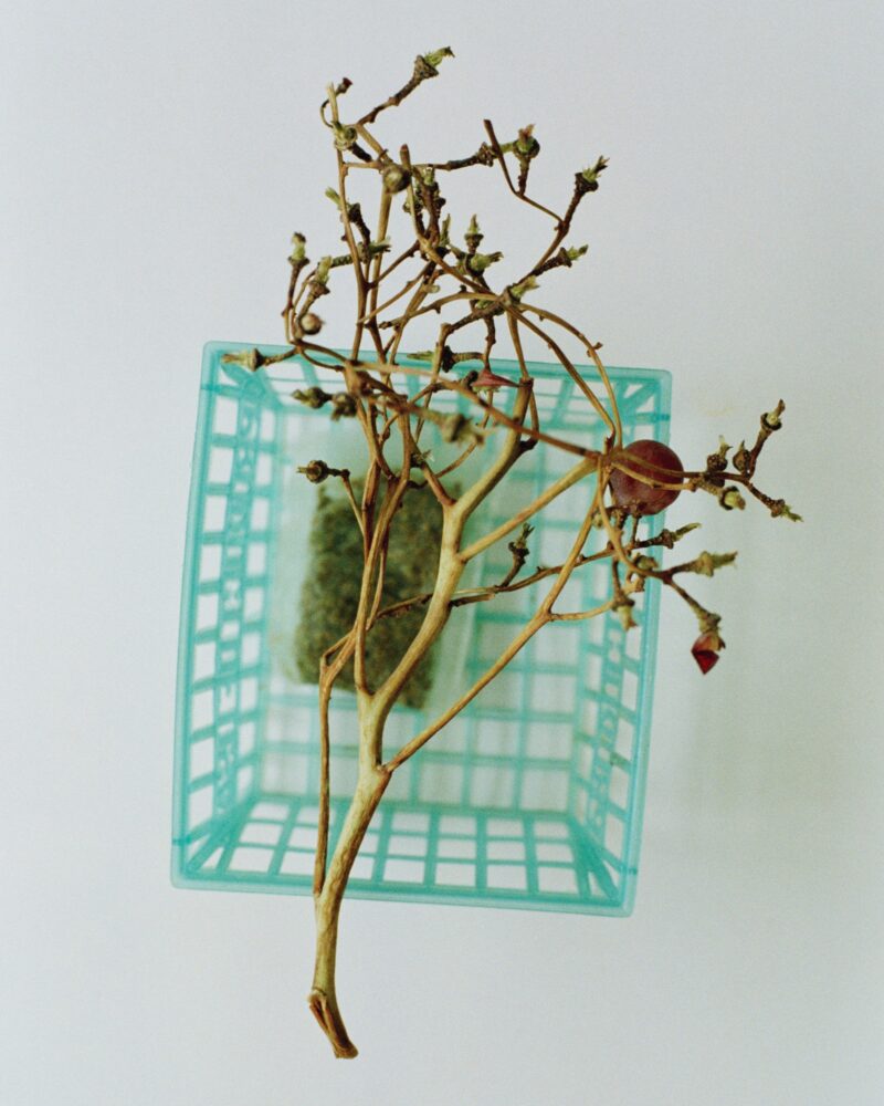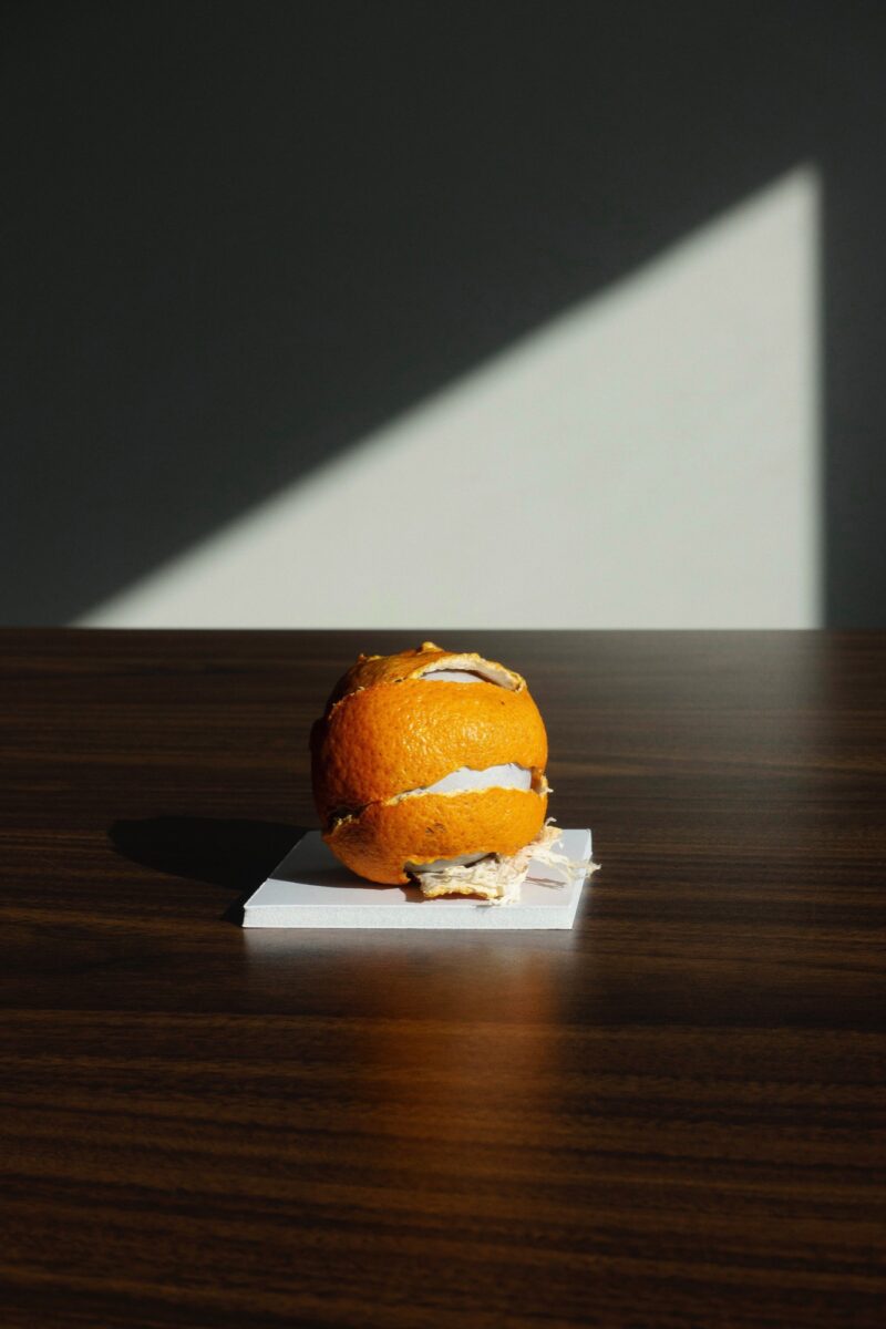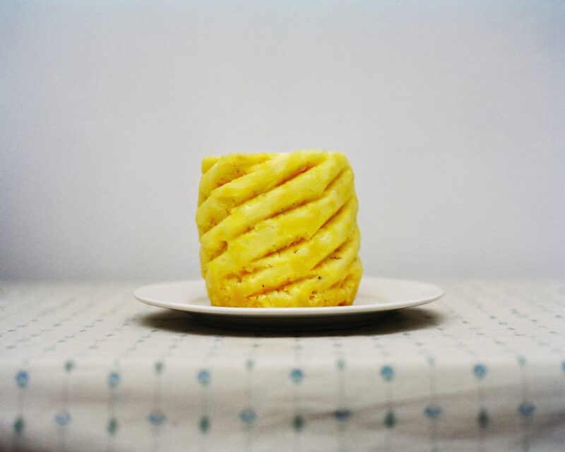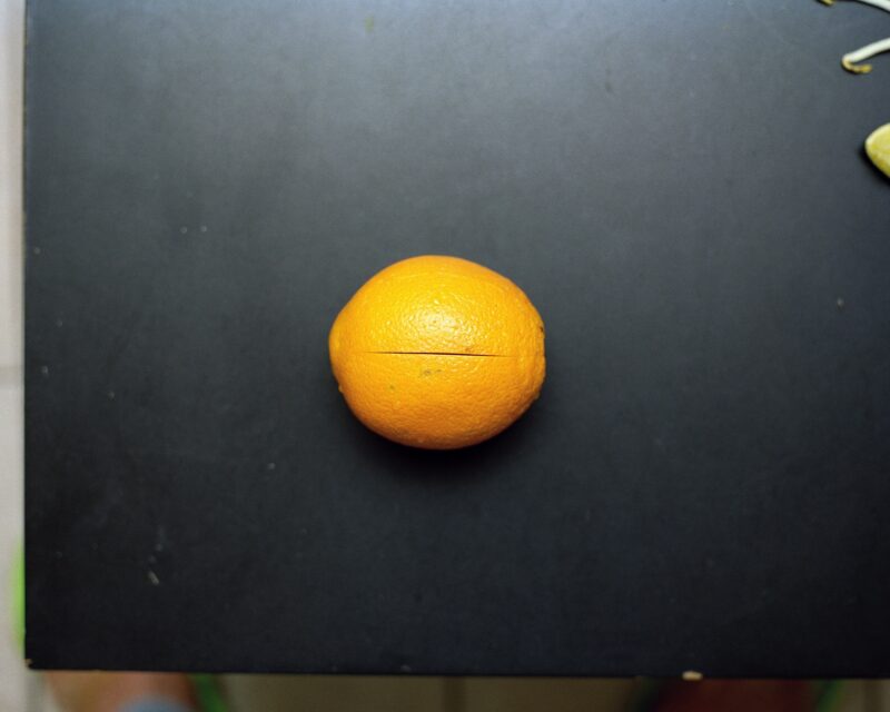 Assemblages du quotidien. À regarder les images, on est rapidement convaincu que cette référence n’est pas gratuite. Aliments, fruits, végétaux y occupent une grande place. Il arrive que la composition baigne dans un certain dépouillement ; les éléments sont isolés, au centre de l’image. On pense aux séries Cabbage Flower (2011), Pineapple (2011), Apple After Shaore (2014), aux images Sad et Happy de la série Orange (2014) et j’en passe. Ou aux ensembles complétés par des éléments domestiques: Grape and Tea Bag (2005), Banana in a Glass (2005), Watermelon, Coffee and Detergent (2009), White Cans and Pineapple (2009). Puis à des scènes plus complexes : Oranges, a Glass Ball and Shadows (2016), Pomegranates, Plastic Packaging and Wood (2016), Stems and Orange Peels on Cardboard (2020).