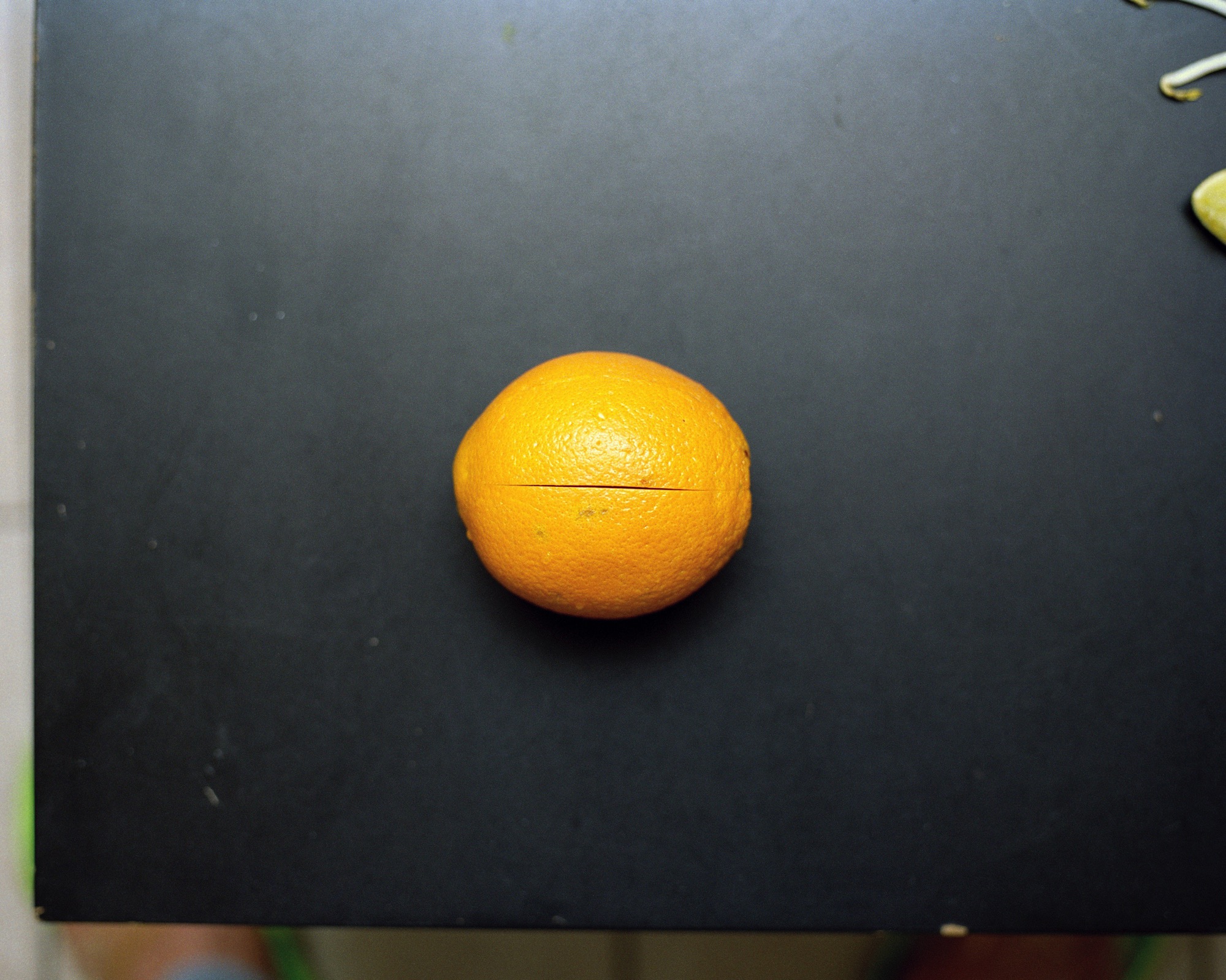 Assemblages du quotidien. À regarder les images, on est rapidement convaincu que cette référence n’est pas gratuite. Aliments, fruits, végétaux y occupent une grande place. Il arrive que la composition baigne dans un certain dépouillement ; les éléments sont isolés, au centre de l’image. On pense aux séries Cabbage Flower (2011), Pineapple (2011), Apple After Shaore (2014), aux images Sad et Happy de la série Orange (2014) et j’en passe. Ou aux ensembles complétés par des éléments domestiques: Grape and Tea Bag (2005), Banana in a Glass (2005), Watermelon, Coffee and Detergent (2009), White Cans and Pineapple (2009). Puis à des scènes plus complexes : Oranges, a Glass Ball and Shadows (2016), Pomegranates, Plastic Packaging and Wood (2016), Stems and Orange Peels on Cardboard (2020).