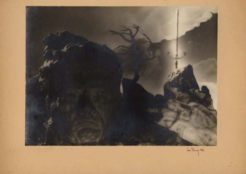 Dans le cadre de l’exposition de l’artiste Guillaume Adjutor-Provost intitulée Belles eaux1, nous avons été invité à montrer et présenter trois œuvres rares (des fac-similés) d’un ensemble d’exception que nous venions de découvrir. Acquis lors d’une vente aux enchères tenue en France en octobre 2020, il est composé de photomontages monotypes sur papier au gélatino-bromure contre-collés sur un grand carton fort. Signées et datées entre 1946 et 1948, ces œuvres remarquables n’avaient pas été vues à Montréal en plus de soixante-dix ans. Leur auteur demeure jusqu’ici pratiquement inconnu des historiens. Son nom : Évariste Desparois.