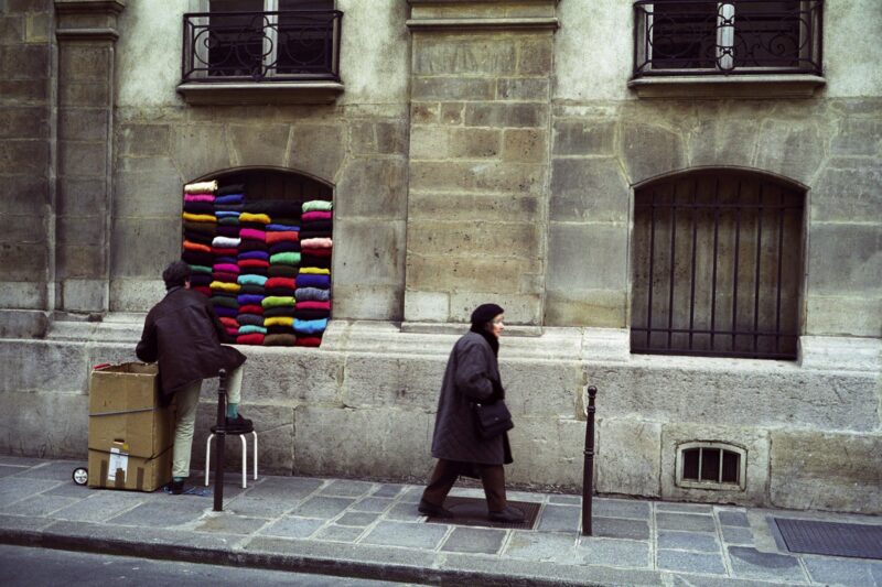 Fort d’un « journal » rédigé par Franck Gérard au gré de ses pérégrinations et d’une avalanche de photographies, En l’état1 est un ouvrage difficile à classer. Ce mélange renverrait aux carnets que tiennent les voyageurs et que caractérise une hybridité stylistique. Mais En l’état ressemble aussi à un manifeste, comme si l’auteur voulait affirmer en écrivant et en photographiant qu’il ne se prend ni pour un écrivain ni pour un photographe. Deux précarités se conjuguent donc ici, que le photographe transforme en une affirmation artistique, singulière et anarchique. Franck Gérard est un obstiné, un dilettante sérieux qui ne se laisserait jamais aller à sortir de chez lui sans son appareil photo. Cette règle est la conséquence de l’idée qu’il se fait de son art, tout entier contenu dans la rencontre du photographe et de l’être-là du monde. Franck Gérard est un photographe d’extérieur : il se promène, muse au hasard des situations, l’œil aux aguets. C’est là son éthique et sa poétique. Il hume l’ambiance urbaine – qui est son véritable monde – à l’affût des traces que laissent dans la ville les existences humaines. On le sait, la photographie n’échappe jamais totalement au monde réel dont elle conserve la trace. Et pourtant, ce qu’elle montre n’est que l’écho décalé de cette réalité, le récit d’une ballade que l’on dirait onirique.
