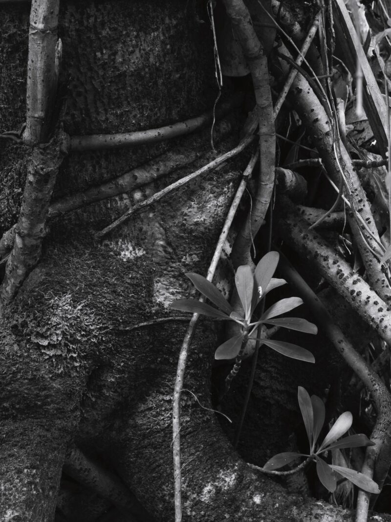 Dès l’ouverture du livre, le lecteur est envahi par les tonalités très sombres sur lesquelles repose une grande partie de l’œuvre. Il faut souligner la qualité de l’impression qui réussit à traduire une gamme surprenante de valeurs situées aux extrêmes obscurs de l’histogramme. Le design sobre du livre laisse toute la place à la photographie, si ce n’est que pour un court texte poétique de l’auteur Paul Kingsnorth. Ce dernier est connu pour la création, en 2009, du Dark Mountain Project, un mouvement valorisant le rôle de la création dans le renouvellement du discours environnemental. Uncivilisation, le manifeste du groupe, appelait, entre autres choses, à une écriture « incivilisée » dont « la perspective considèrerait l’humain comme la parcelle d’une toile complexe et non comme le personnage tenu sur un palanquin, avançant au-devant d’une longue procession d’êtres vivants au service de notre puissance glorieuse ». L’écriture photographique de Jude répond à cet appel en mettant en relief les forces parmi lesquelles nous nous retrouvons et en proposant une œuvre qui les reconnecte à notre expérience plutôt que de les présenter comme des objets d’étude dissociables et indépendants.