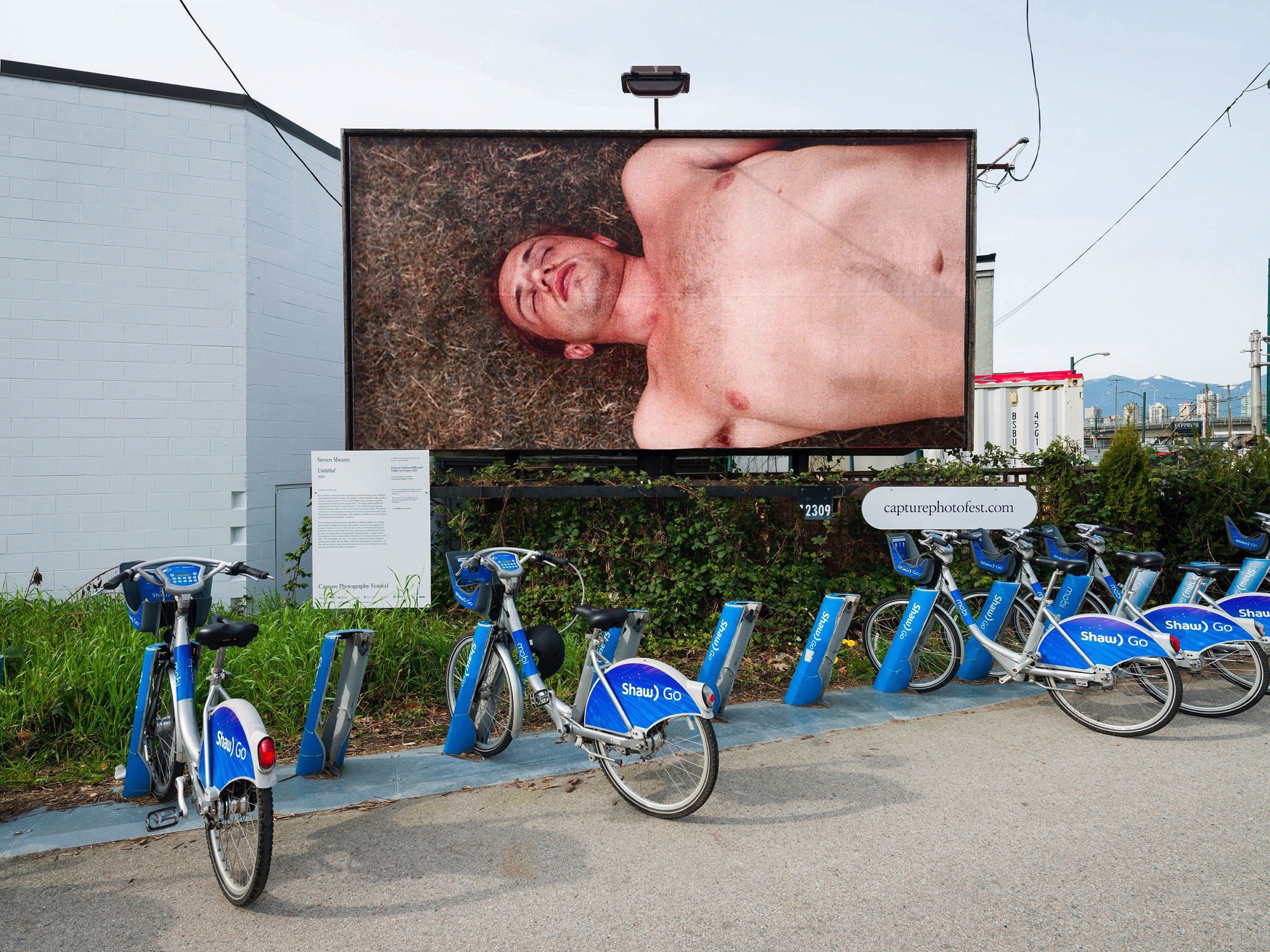 Les panneaux les plus remarqués de Capture ont été une série de sept photographies de l’artiste vancouvérois Steven Shearer placées sur un sentier pédestre et cyclable sur l’ancienne voie ferrée du CP. Ces images ont été exposées pendant une journée et demie avant que la société d’affichage Pattison, qui avait prêté l’espace à Capture, ne les fasse enlever après des réactions outrées du public. Prises sur Internet, elles représentent des gens en train de dormir et sont liées par Shearer à un imaginaire religieux canonique et extatique, mais aussi à la « manière dont tant de moments anodins de nos vies dans la société contemporaine sont livrés à la consommation du public ». Les sujets endormis sont intrinsèquement vulnérables, ce qui a mis plusieurs personnes mal à l’aise. Ce niveau d’inconfort fait partie intégrante de l’œuvre, projetant des images privées sans aucun filtre dans l’espace public à une échelle telle qu’elles ne peuvent être ignorées. Malgré la présence sur place d’une signalisation didactique, un certain nombre de gens ont interprété ces clichés comme montrant des personnages drogués ou décédés. Ce fiasco a soulevé de nombreuses questions. Les commissaires ont-ils ou elles pris en compte la crise actuelle du fentanyl à Vancouver avant de décider de présenter ces effigies à ce moment précis ? Est-ce que des panneaux publics étaient le support approprié ? Pourquoi une entreprise de publicité décide-t-elle ce que le public peut ou ne peut pas voir ? Si l’espace pour ces affiches avait été payé, cette société se serait-elle précipitée pour les retirer ? Shearer est demeuré remarquablement et intelligemment silencieux. En réaction, Capture a réuni un impressionnant ensemble d’acteurs de l’art public de Vancouver et d’ailleurs dans le monde. Comme le groupe l’a mentionné, commissaires et producteurs se doivent d’anticiper les problématiques et de créer un espace sûr pour accueillir l’art et les spectateurs. En matière d’art public, les relations sont importantes, tout comme la compréhension du contexte et l’exploration de tous les canaux de communication pour créer un rapprochement avec les partenaires et les gens.