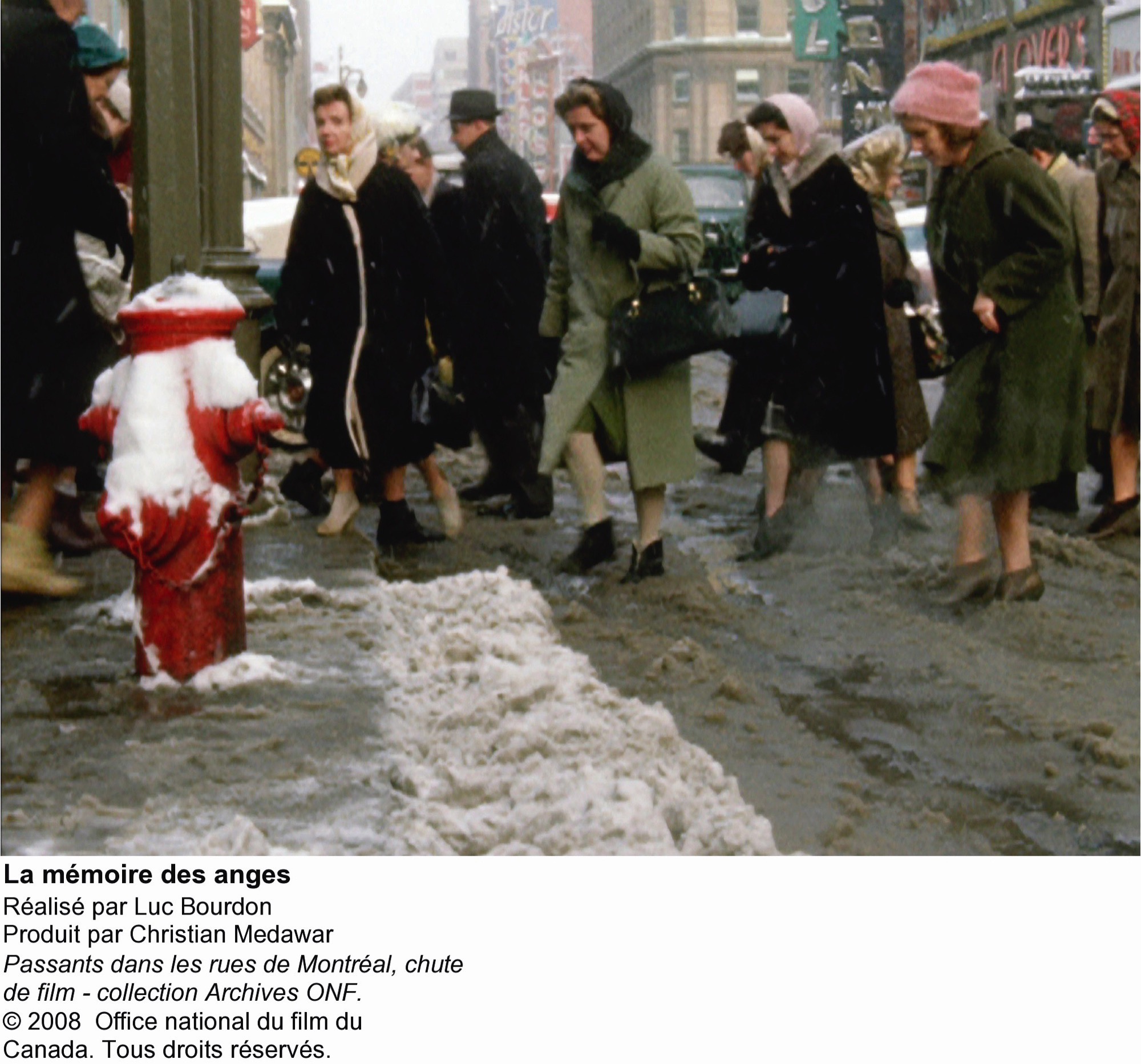 À l’automne 2005, je parcours la collection de l’ONF avec l’aide des cassettes vhs de la vidéothèque. Le premier film que j’y visionne a pour titre Les Borges (1978) de Marilú Mallet : un portrait de la famille portugaise qui habitait la maison où je vis alors (et encore aujourd’hui). J’y découvre des séquences sur le passé de cette habitation qui m’est chère. Au fil des cassettes, je découvre un Montréal que je ne connais pas : celui de mes parents des années 1940 et 1950, celui de mon enfance des années 1960 et de mon adolescence des années 1970. Je croise un cinéma riche de traditions et d’expérimentations qui passent admirablement bien le temps. Je cherche les petits bijoux qui se cachent entre deux séquences, entre deux plans. Je monte en deux semaines une maquette de 30 minutes avec la collaboration de Michel Giroux. Le résultat est probant et permet de passer à l’étape suivante.