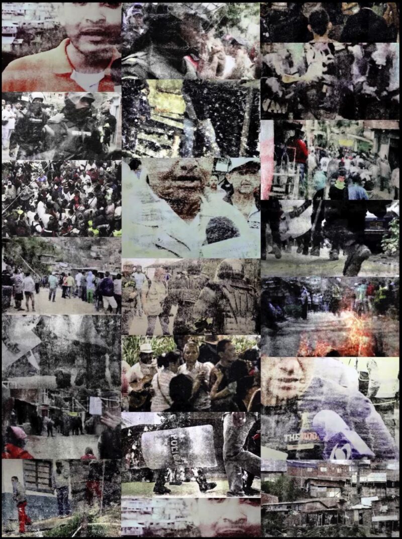 Uchronie s’articulait autour du court métrage YULÍ. Le duo dira de cette œuvre, présentée à la fin du parcours de l’exposition, qu’elle a été réalisée telle une démarche expérimentale, à partir de la récolte d’histoires sur le thème de l’identité et du territoire, dans un quartier de Medellín, en Colombie. YULÍ livre un témoignage en partie fictif et en partie réel d’une étudiante universitaire qui découvre la dure réalité d’un secteur de la ville, en compagnie d’un guide auquel elle se serait attachée. L’œuvre donnait le ton à l’exposition, interrogeant notamment le rôle des médias dans un développement urbain teinté de mensonges, de jugements et de prises de position arbitraires. Un sentiment d’impuissance nous envahissait à la vue et à l’écoute de cette œuvre : est-ce que des gens qui contestent le « développement » d’un quartier peuvent « disparaître » sans que personne ne puisse rien y faire ?