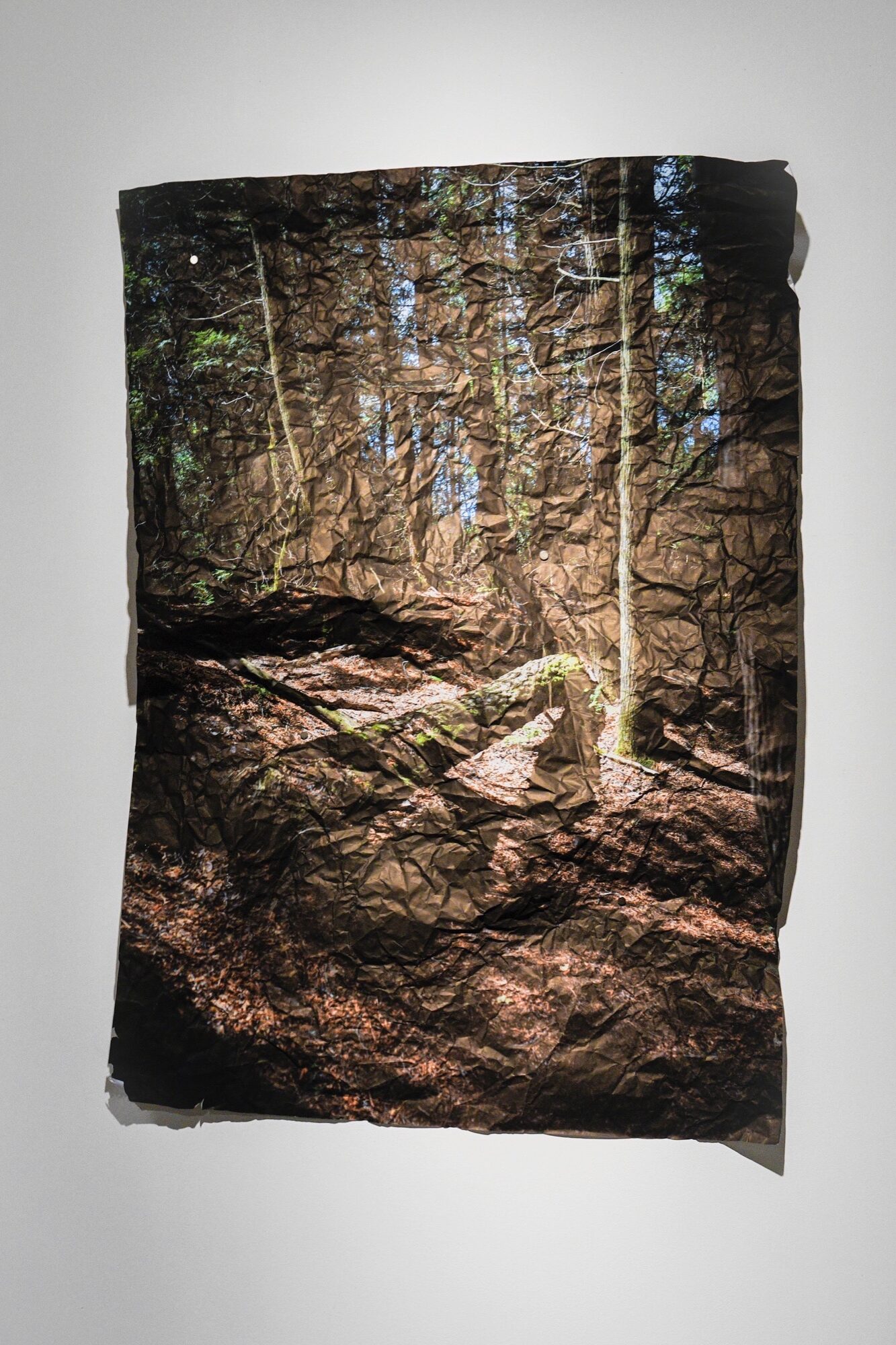 Comment se sent-on à l’entrée d’un sentier, au seuil d’une forêt ? Comment se sent-on au début d’un parcours d’exposition, au seuil d’un écosystème d’œuvres ? Dans les deux cas, il faut apprendre à lire les signes pour mieux s’orienter et se connecter au monde du sensible. Dans Façonner son sentier, Sébastien Michaud sculpte ses photographies captées en 2022 dans le parc D’Arts et de rêves, à Sutton, par des stratégies uniques et ingénieuses leur donnant corps. La succession d’une vingtaine de petites stations picturales ou sculpturales invite à des arrêts sur image, semblables à ces haltes obligées devant des fragments de paysages dignes d’intérêt, pour que ce qui s’offre à voir puisse rester en nous.