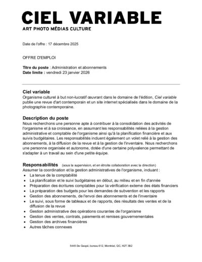 Date limite de dépôt des candidatures : le vendredi 23 janvier 2026